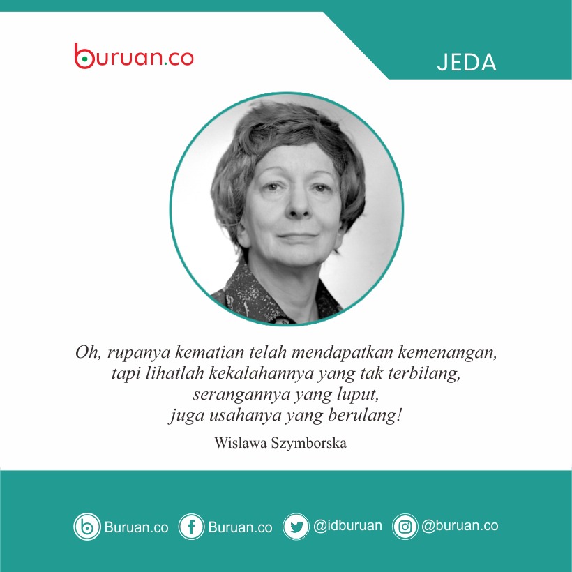 Berdiri di pinggir tol, mensyukuri nasib yang-untung-masih-selamat sambil merenungi baris puisi Szymborska di atas, saya seolah mendapat pemahaman lain soal maut. Betapa tidak, maut—yang kerap dipahami sebagai entitas yang sanggup membuat semua makhluk hidup tak berdaya—dalam pandangan Szymborska nyatanya punya sisi-sisi “kekalahannya” juga. Berdasar pandangan tersebut, selamatnya kami dari maut di satu sisi adalah kekalahan maut di sisi lainnya. Sungguh sebuah pandangan yang cukup segar sekaligus berani.