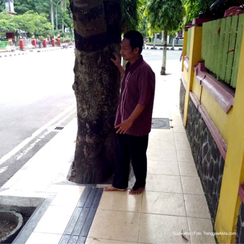 Suprayitno, penyandang tunanetra, berjalan menyusuri trotoar di Kabupaten Trenggalek. Sore itu, ia ingin pergi ke Alun-Alun Kabupaten untuk menikmati internet gratis di sana, sekaligus mendengarkan suasana yang ada di sana: suara motor, suara mobil, dan orang-orang yang berbicara. Pada awalnya, ia senang karena trotoar itu telah dilengkapi guiding block. Namun, saat sampai pada titik tertentu, ia terhenti karena guiding block itu malah mengarahkannya ke sebuah pohon. Ia harus mencari jalan lain untuk melanjutkan perjalanannya. Ia meraba-raba jalan dengan kaki. Kakinya mencoba untuk menemukan kembali guiding block yang sempat hilang di trotoar itu. Ia melanjutkan kembali perjalannya dan beberapa kali menabrak pohon dan tiang listrik.