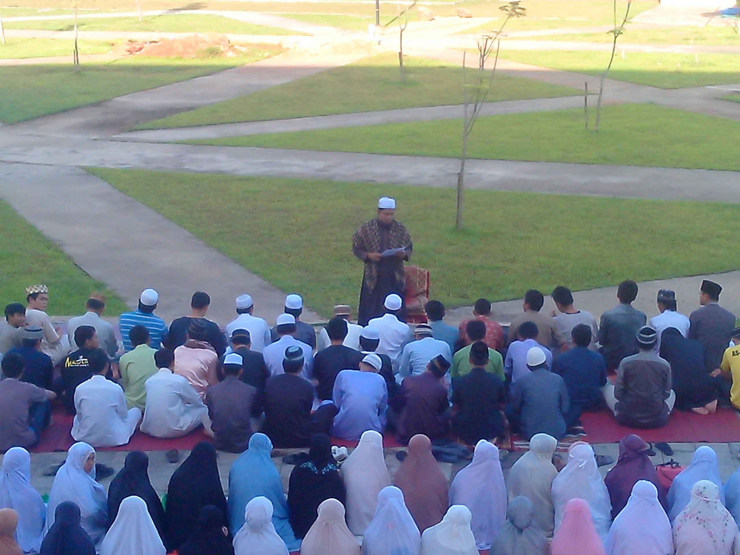 Tak ada rotan, akar pun jadi. Belum ada masjid, halaman stadion sepakbola pun dijadikan tempat untuk melaksanakan shalat Idul Adha. Begitulah kira-kira pemandangan pada Minggu pagi, 5 Oktober 2014. Sekira pukul tujuh, para mahasiswa sudah berkumpul di halaman stadion sepakbola di kampus Universitas Mae Fah Luang, Chiang Rai—Thailand.