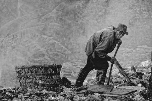 Seperti apa yang diceritakan dalam foto itu. Seorang Bapak Tua yang hanya menghargai diri jika dirasa berguna bahkan untuk sisa-sisa manusia. Kadang ia membakar sampah di antara pepohonan yang ada, agar asapnya tak lari ke mana. Kadang ia membereskan sampah agar tidak masuk ke dalam sungai, atau kadang memilih mengambil kembali barang-barang yang masih layak dan bermanfaat ke dalam carangka, setidaknya bermanfaat bagi ia dan keluarganya.