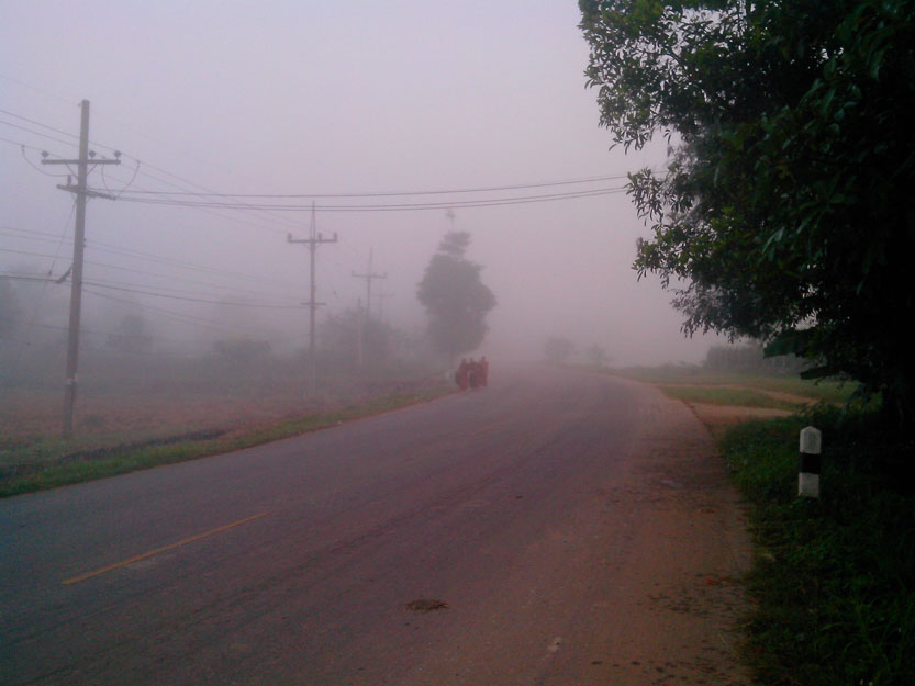 Saya katakan bermakna karena saya menjadi saksi matahari merayap naik, kabut beranjak turun, para biksu berjalan menembus kabut tanpa alas kaki untuk memberi berkat dan berdoa kepada mereka yang menunggu di gigir jalan, warung-warung kelontong dan bermacam kuliner dibuka dan dijajakan, orang-orang di pasar berbenah sebelum pulang, dan anak-anak bersiap ke sekolah.